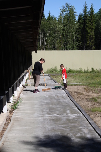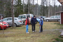![]() Heikki jututtaa nuoria talkoolaisia. | ![]() Taulujen putsausta ja kuulutuslaitteen testausta. |