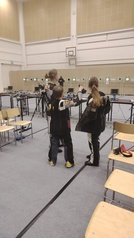 Seuraavaksi vuorossa olivat 12VT sarjat. Pistoolissa Jessica Salo nappasi sijan 10. tuloksella 153 ja kiväärissä Wilhelmiina Mikola oli tuloksella 165,6 sarjansa viides.