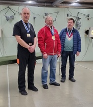M50 sarjan mestaruus meni Tero Hovilalle tuloksella 392.2 ja Ilkka Ratamo otti hopeaa tuloksella 385.5. M60 sarjassa Markku Haklin vei hopeaa tuloksella 386.6 ja Ilkka otti pronssia tuloksella 386.2. Tero, Markku ja Ilkka veivät myös Y50 sarjan joukkuemestaruuden tuloksella 1165.0.