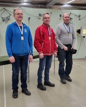 M sarjassa Jyry Laaksonen otti hopeaa tuloksella 590.3, Ari Grönholm vei pronssia tuloksella 536.9 ja ensimmäisissä kisoissaan ampunut Christian Bäro oli neljäs tuloksella 508.1. Jyry, Ari ja Christian olivat Y sarjan joukkuekisassa hopealla tuloksella 1635.3.
