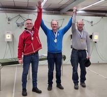 M50 sarjan mestaruus meni Tero Hovilalle tuloksella 392.2 ja Ilkka Ratamo otti hopeaa tuloksella 385.5. M60 sarjassa Markku Haklin vei hopeaa tuloksella 386.6 ja Ilkka otti pronssia tuloksella 386.2. Tero, Markku ja Ilkka veivät myös Y50 sarjan joukkuemestaruuden tuloksella 1165.0.