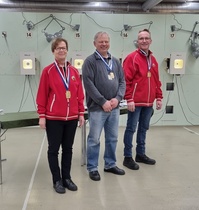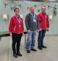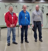 M sarjassa Jyry Laaksonen otti hopeaa tuloksella 590.3, Ari Grönholm vei pronssia tuloksella 536.9 ja ensimmäisissä kisoissaan ampunut Christian Bäro oli neljäs tuloksella 508.1. Jyry, Ari ja Christian olivat Y sarjan joukkuekisassa hopealla tuloksella 1635.3.