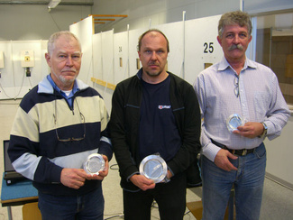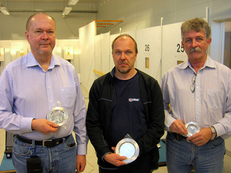 pistoolin parhaat vas. Veikko Ratsula TSA , Sakari Viertola SSG ja Pekka Paatinen SSG |