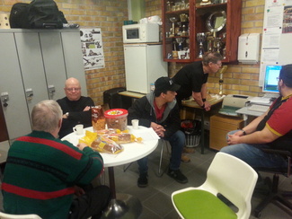![]() Ampujia kahvittelemassa ja jutustelemassa. |