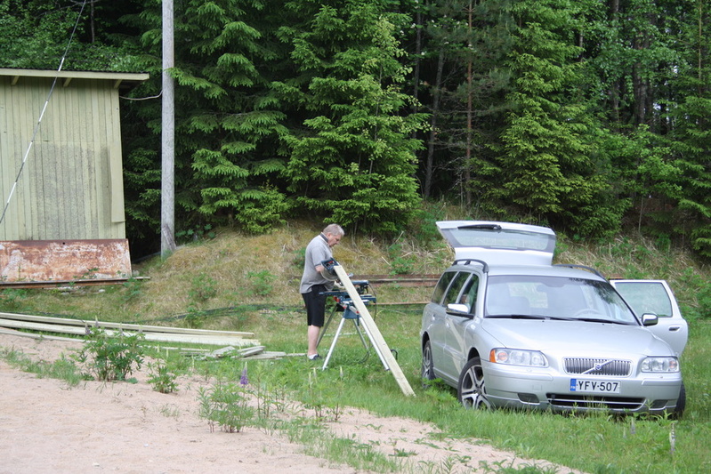![]() Ruohonleikkuu hyvässä vauhdissa. | ![]() Taulujen tekoa. |