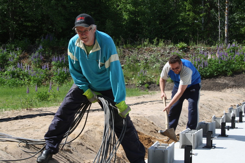 Paljon oli talkoolaisia lähtenyt radalle vaikka keli oli viileä ja sateinen.
